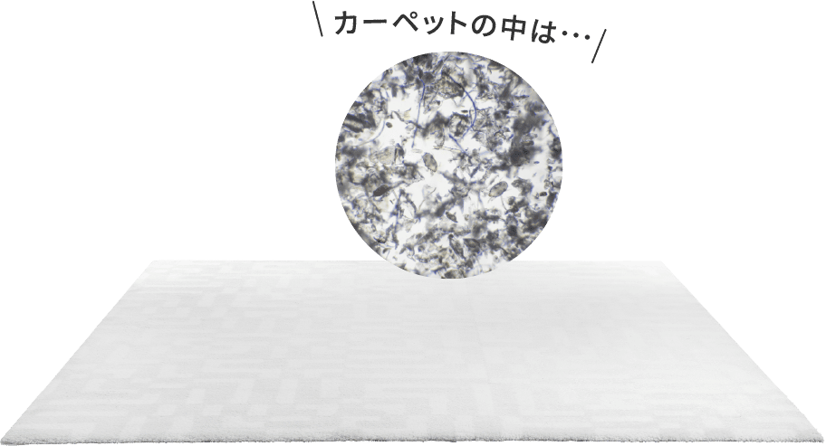 カーペットの中には人のアカやフケを好むダニや、湿気で発生するカビを餌にする