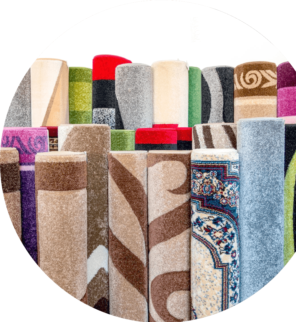 ホットカーペットカバー、平織りカーペット、タフテッドカーペット(裏にフェルト・麻などの生地が張られているもの)、レーヨンカーペットウイルトンカーペット(ウール、ウール混紡、ポリエステル、アクリル、ポリプロピレン)シャギーカーペット(毛足が1㎝以上あるもの)フック緞通(手作業で立体的な彫刻作業が施されており、白やベージュ色などの裏張りがるもの)中国ウール緞通、パキスタン絨毯、アフガンカーペット、インドウールカーペット、チベット絨毯