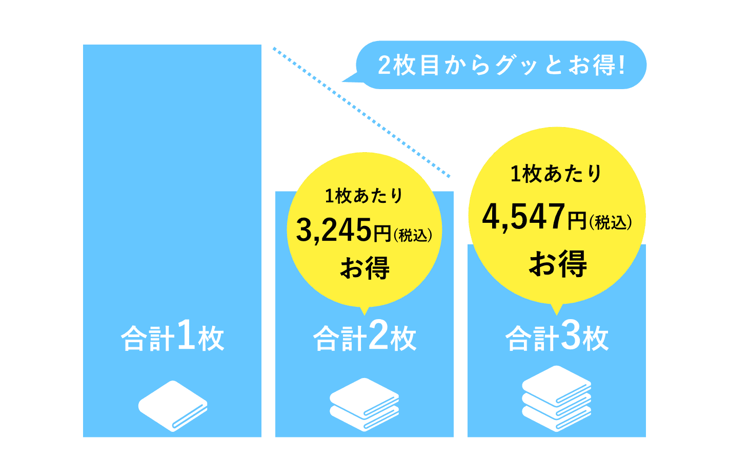 | 3点まとめて | 12,500円(ダブル・クィーン・キングサイズも可) | 13,750円(税込) | 1枚あたり4,167円 |